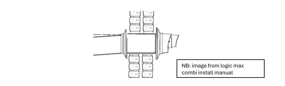 In challenging installations, where the boiler is neither mounted on an outside wall, nor positioned to allow a vertical flue run, and where the distance to reach an outside wall with a horizontal flue exceeds the limits of standard concentric flues, you will find a twin flue arrangement.